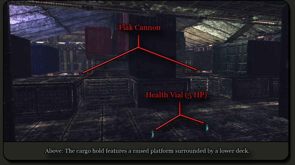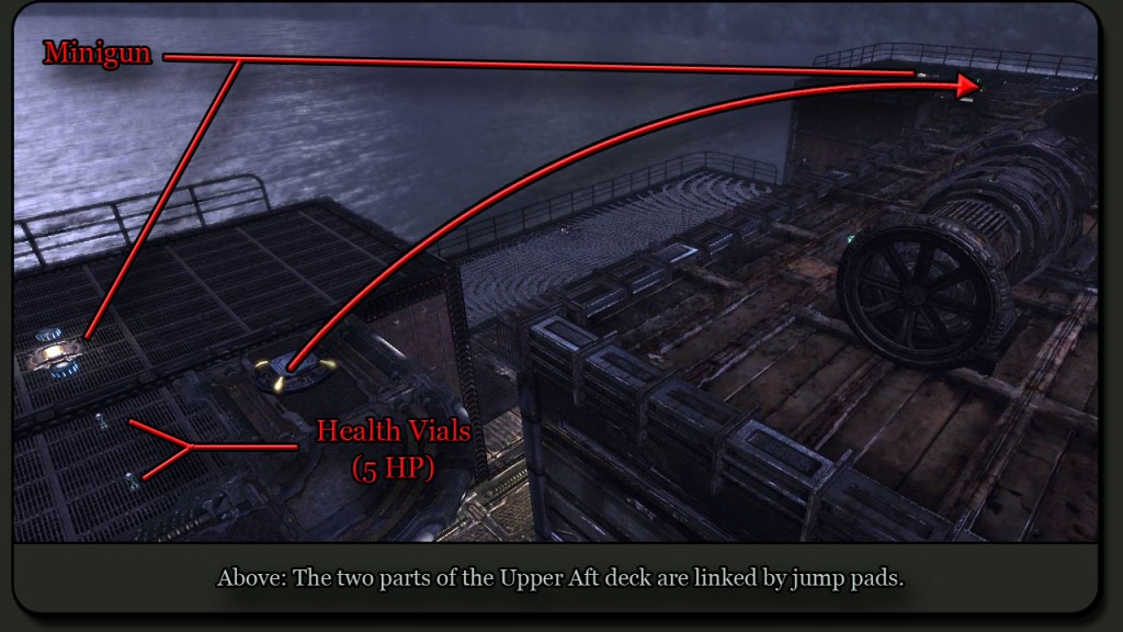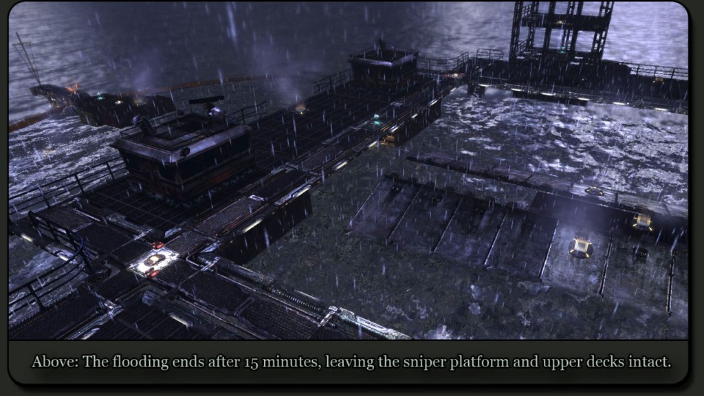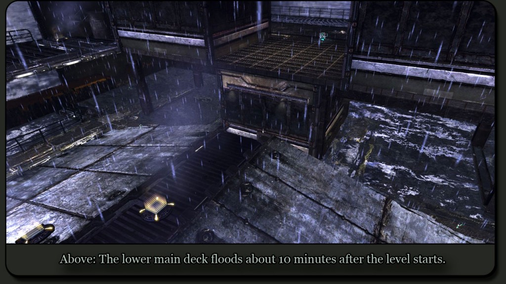 - Playtesters were having difficulty escaping the rising water from several areas of the ship, including the lower level cargo hold. Escape routes had to be added to every area where players might become trapped, complicating the flow for the level.